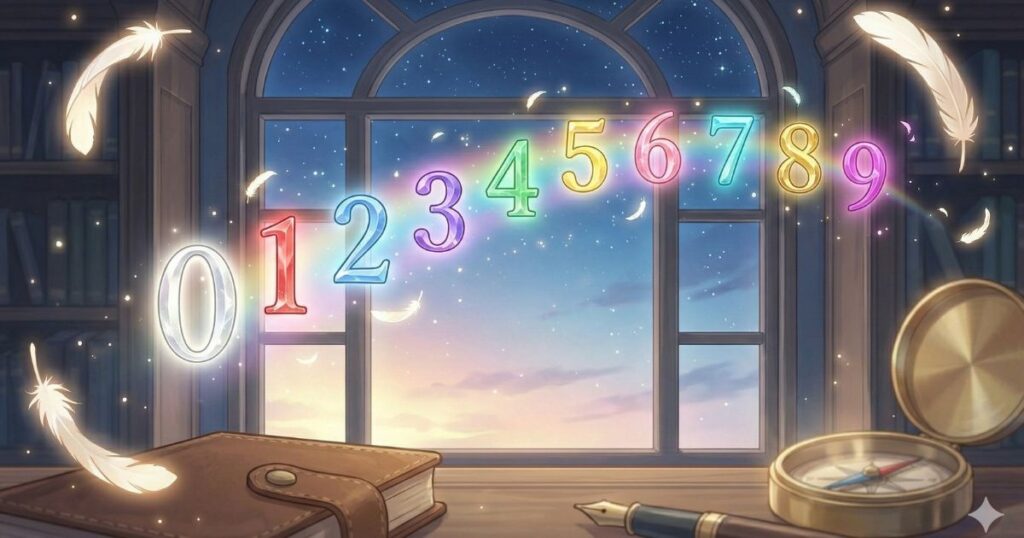 エンジェルナンバーを読み解くうえで、すべての基本となるのが「0から9」の数字が持つエネルギーです。3桁や4桁といった複雑な数字も、もとを辿ればこれらの組み合わせで構成されています。