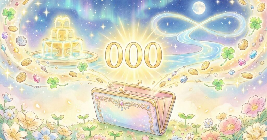 金運における「000」は、「お金に対する固定観念のリセット」と「無限の供給」を意味します。